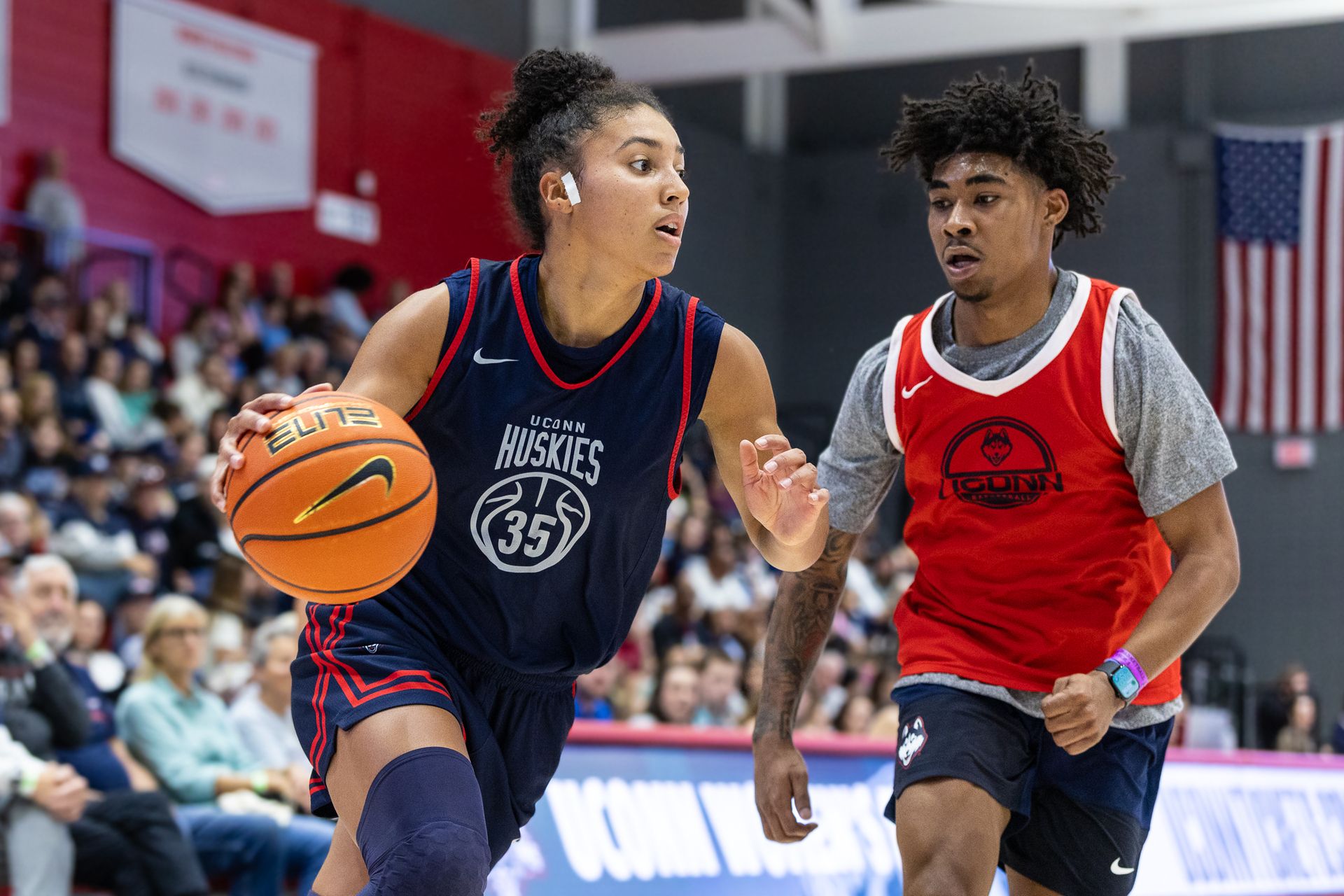 Once drills were done, UConn held an intrasquad scrimmage that consisted of three periods of various lengths (at least one was 10 minutes, another was eight minutes). They had three officials on hand to call the game.