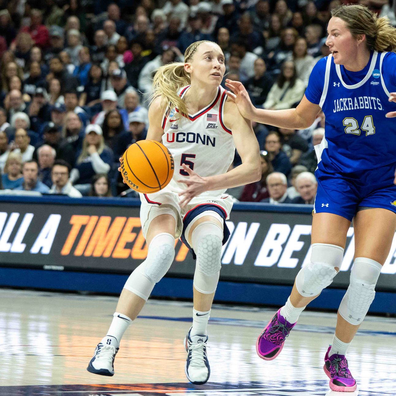 Five years later, she played her final game in Storrs in front of a raucous sellout crowd as the Huskies beat South Dakota State to advance to the Sweet Sixteen.