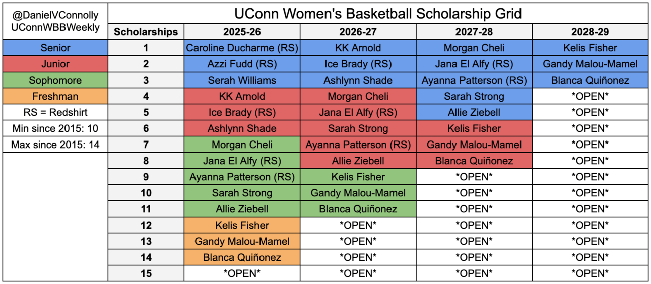UConn now has one scholarship open next season. The Huskies are targeting a ball-handler and reportedly hosted USC transfer Kayleigh Heckel on a visit alongside Williams this past week.